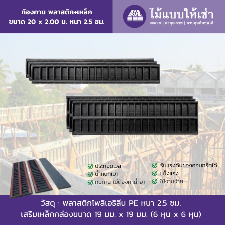 แบบท้องคาน พลาสติก+เหล็ก ขนาด 20 x 2.00 ม. หนา 2.5 ซม.